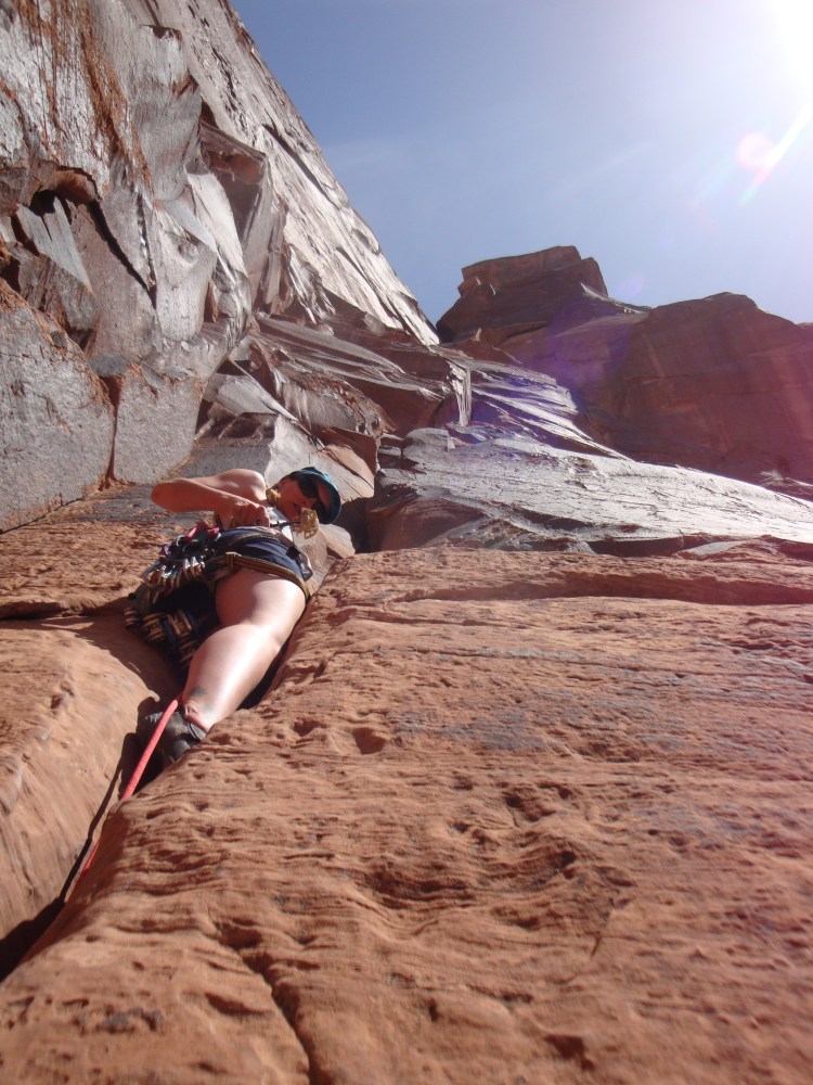Lynsey putting her knowledge of the munter hitch and prusik knot to good use.