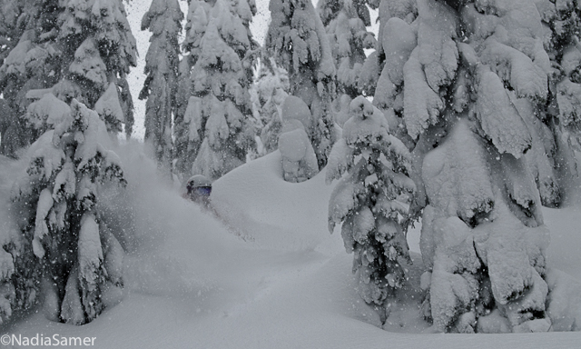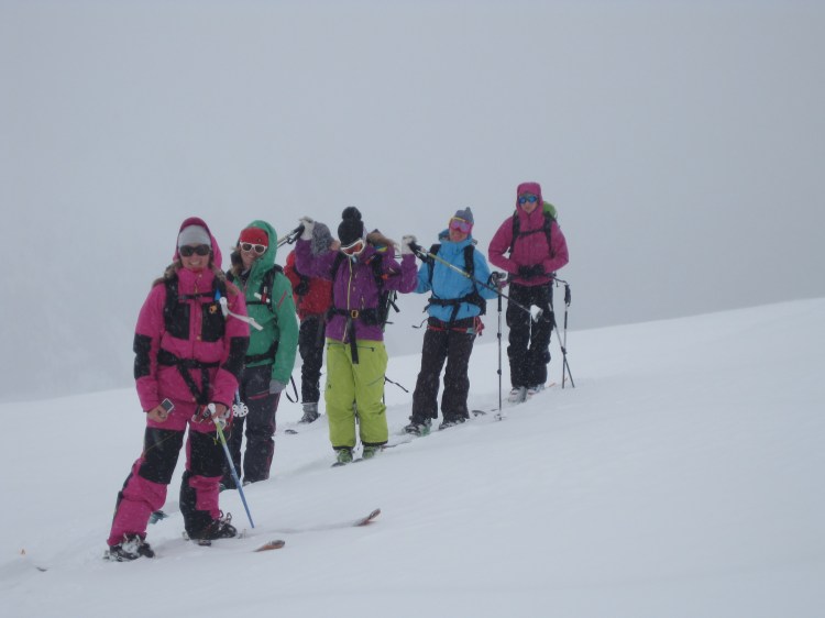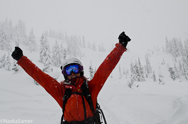 The next morning went by fast… I recall five frazzled gals piling out of a diesel truck, ski gear and clothes covering a road, no-hands pogo sticking (seriously intense), and a 10 minute heli flight that took us from spring to winter. We landed in a magical blizzard and settled into the lodge. The next 7 days were informative, exciting, adventurous, and fun…. with a little crazy mixed in.