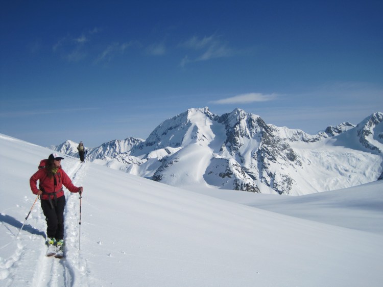 The ideas behind Alpine Finishing School were thought up by Anne Keller, an AMGA and ACMG guide as well as an amazing woman. Anne contacted SheJumps to see if she could rally a group of women together for a trial run of the “school”. Definitely a success. We spent one week at the Selkirk Lodge honing our mountaineering skills while making some of the best turns of the season.